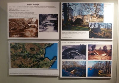 Part of the display shows the original road bridge over the Evelix River, close to the junction of the A9 and A949, which can be easily overlooked amongst the trees to the south of the new bridge carrying the A9 .