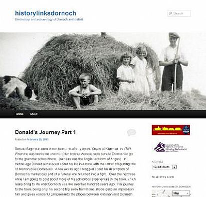 The blog is complementary to Historylinks Museum's web presence which has been progressively enhanced in the last few years. Before 2005 the museum's website was rudimentary and did not attract many visitors. The website now provides details about the museum and its permanent displays, Dornoch Roll of Honour Memorial pages added in 2009, and quarterly 'What's New' reports on Dornoch Heritage Society and Historylinks Museum activity.