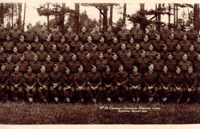 The file contains three sections. The first provides an introduction to the Canadian Forestry Corps recording the inter government agreement covering its deployment to the UK in WW2, its organisation, unit locations and an outline of its logging practice and experiences in Scotland. It records, inter alia, that "Environmental conditions, chiefly climatic, caused the most serious problems for Canadian Forestry Corps operations. The second section provides extracts from the official War Diary of 26 Company providing fascinating insights to the day-to-day events and lifestyle of those serving in the Dornoch area. The third section provides two CDs with jpg images of each of the pages of the War Diary.