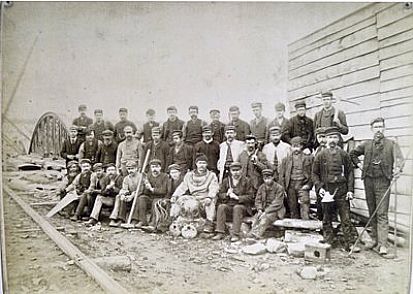 A second postcard shows a group of the construction team, including a diver at centre front, employed in building the second Bonar Bridge in 1893.. This bridge remained in use until 1973 when the current bridge, with greater load bearing capacity,was built.
