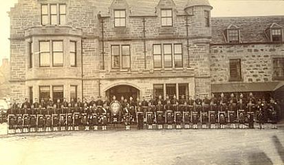 There a many photographs in the museum collection showing the old Sutherland Arms Hotel. One example is the group photograph of the Dornoch Company of Seaforth Highlanders in full dress uniform, taken outside the hotel around 1900. Does anybody know anything about the magnificent shield so proudly displayed?