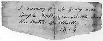 ‘In Memory of A Gray and Hugh McKenzie whitch Drunk this Bottle of Whisky 1864’