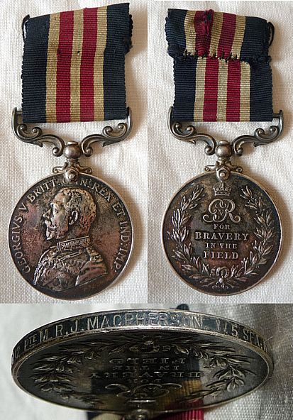 In WW1, he served with B Company 5th Seaforths and was awarded the Military Medal for bravery in the field. As part of his duties he was a runner delivering messages from the front line back to Command and it is believed that while performing these duties that he received the medal for bravery.