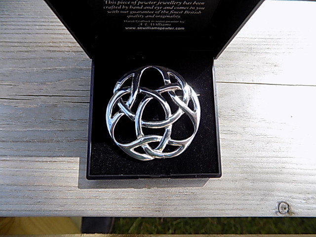 Durrow Knotwork pewter brooch Handmade by A.E Williams.