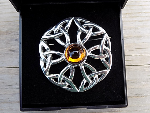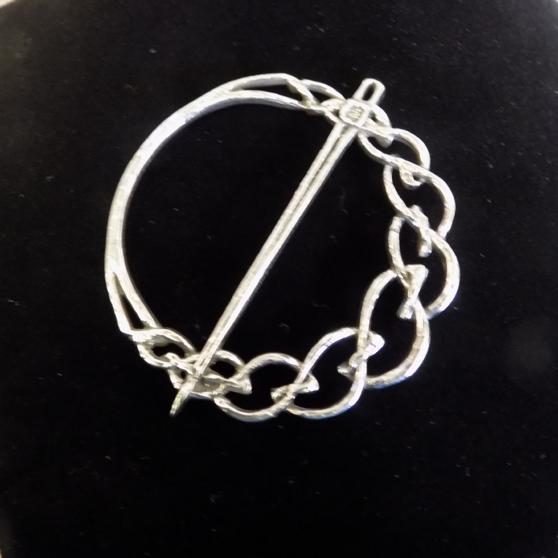 8th Century design Open Knot Spiral pewter brooch with stone.