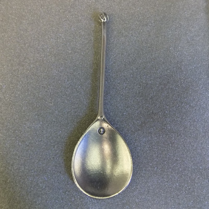 Pewter spoons were sometimes engraved with the maker's mark or initial, or with