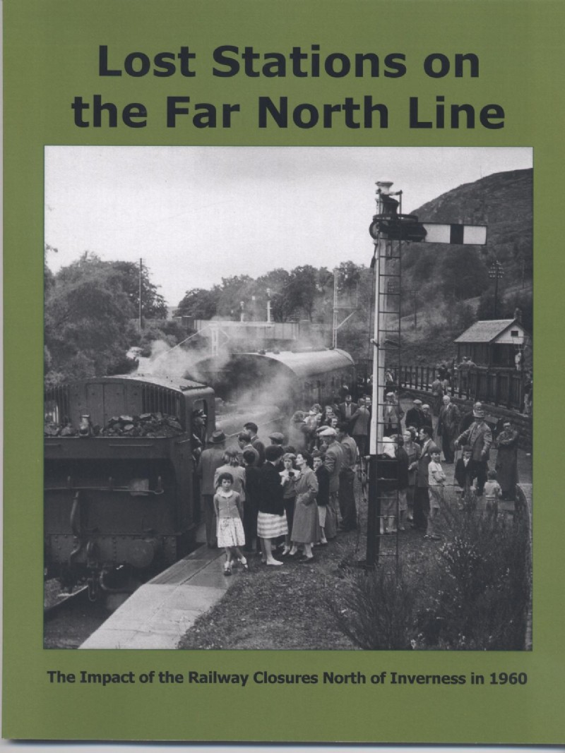 The 60 page booklet covers the impact of the railway closures north of Inverness in 1960, written by Keith Fenwick, Niel Sinclair and Richard R Ardern and published by the Highland Railway Society in June 2010. Monochrome photographs and map diagrams complement the text. A colour map on the inside the front cover shows the Dornoch branch line and the front page monochrome photograph is of the last train from Dornoch arriving at the Mound, with a similar colour photograph on the rear cover.