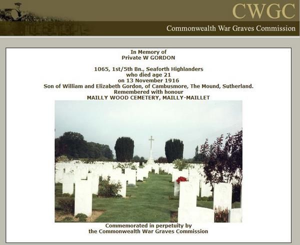 | Parents | William and Elizabeth Gordon of Cambusmore, The Mound, Sutherland |