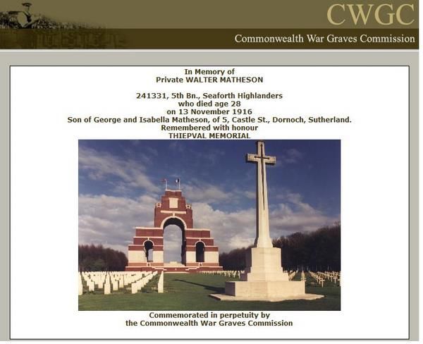 | Parents | George and Isabella Matheson of 5, Castle Street, Dornoch |