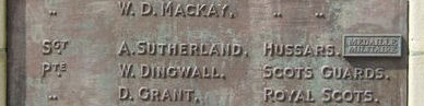 The original Dornoch War Memorial WW1 plaque bearing Alexander's name did not include mention of his award but, following representation, this was corrected with the addition of a small raised bronze 'Medaille Militaire' plaque against his name.