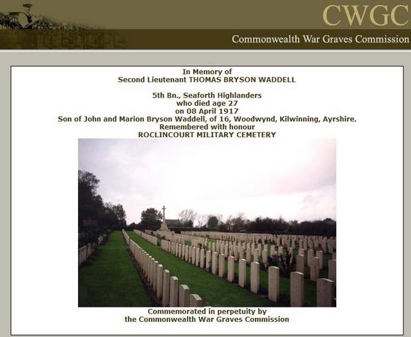 Buried: Roclincourt Military Cemetery, France II. A. 27.