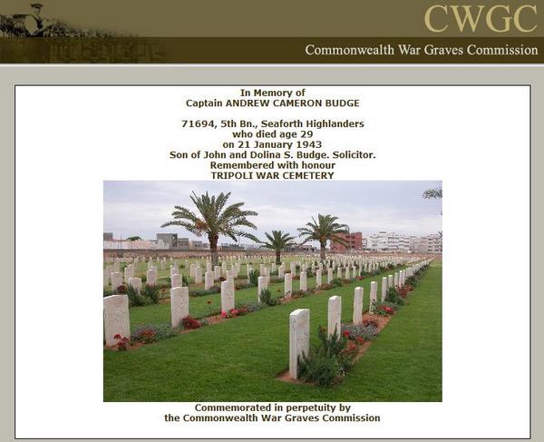 | Parents | John and Doilna S. Budge, Sutherland Road, Dornoch |