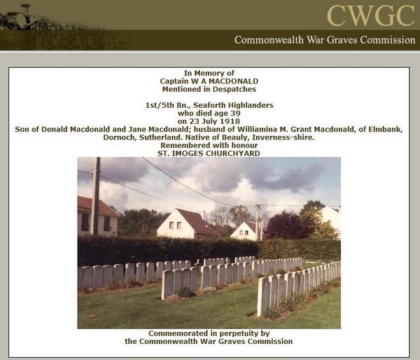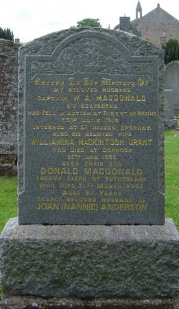Wife: Williamina M. Grant Macdonald of Elmbank, Dornoch. Married 1908
