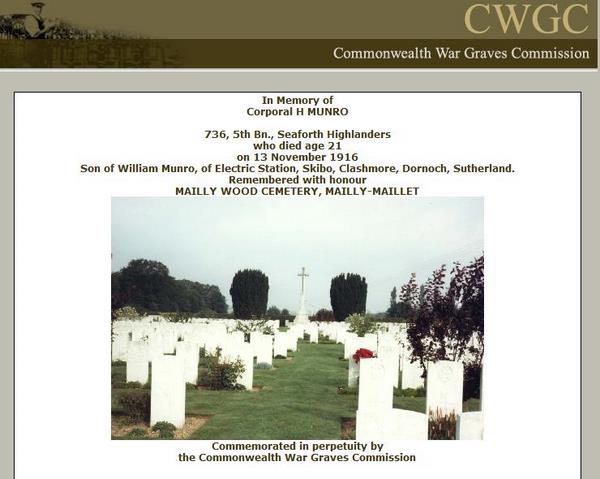 | Died | Killed in action 13.11.16 Beamont Hamel aged 21 |