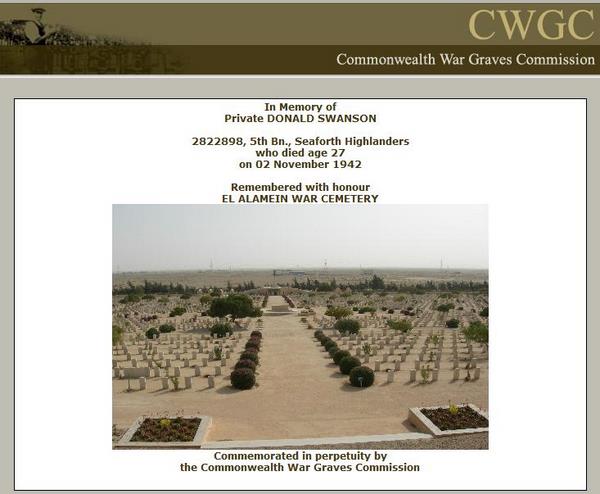 | Died | Killed in action 2.11.42 El Alamein aged 27 |
