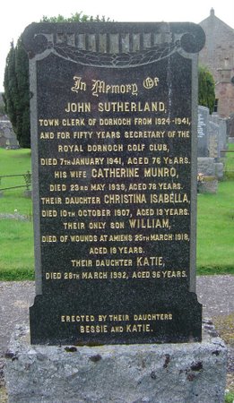 | Parents | John and Katie Munro Sutherland of 'Golf View', Dornoch |