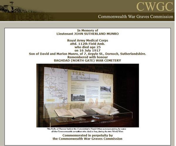 | Parents | David and Marion Munro of 7 Argyle Street, Dornoch |