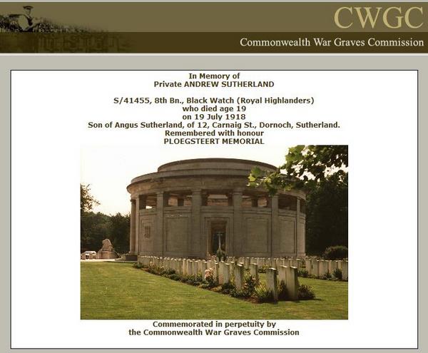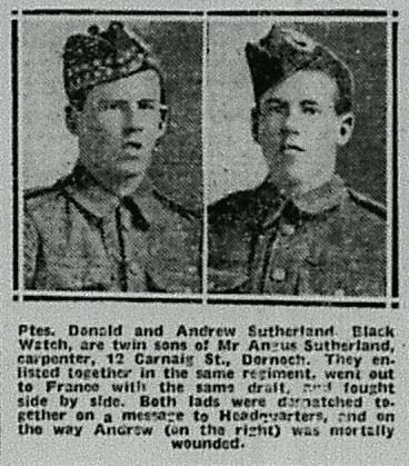 | Parents | Angus Sutherland of 12 Carnaig Street, Dornoch |