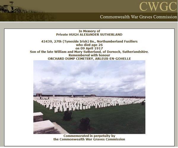 | Died | Killed in Action, Battle of Arras, 09.04.17 aged 26 |