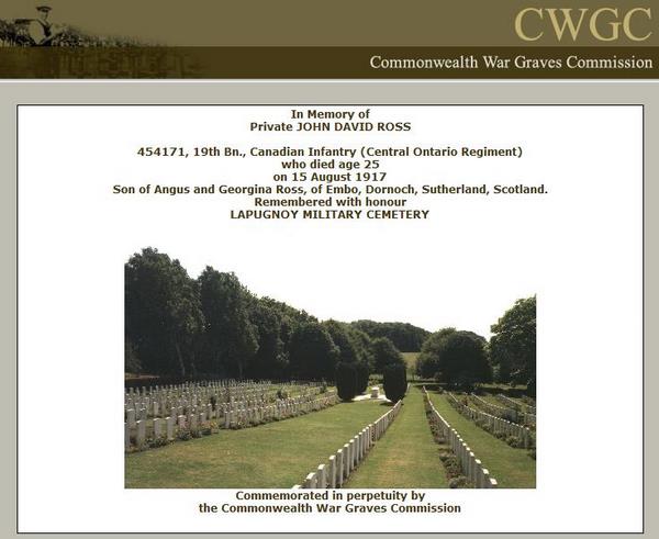 | Unit | 19th (1st Central Ontario Regiment) Battalion, Canadian Expeditionary Force |