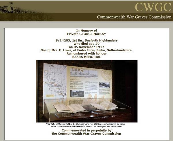 | Unit | 1st Battalion, Seaforth Highlanders |