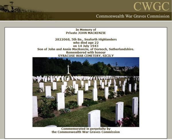 | Parents | John and Annie MacKenzie, of Lonemore, Dornoch |
