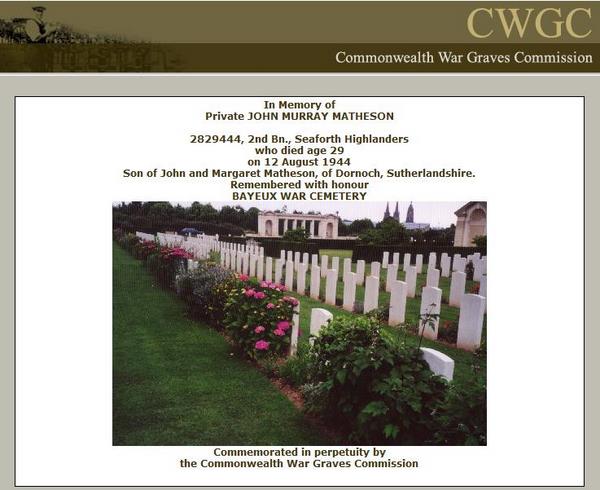 | Parents | John and Margaret Matheson of Well Street Dornoch |