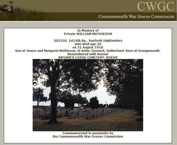 | Unit | 6th (Morayshire) Battalion Seaforth Highlanders T.F. |
